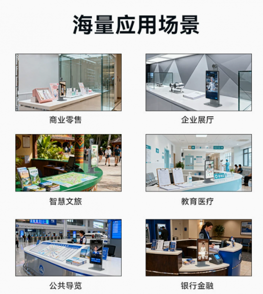 采用高清显示与触控技术,画面细腻流畅,操作灵敏便捷。AI数字人可实现智能问答、主动迎宾